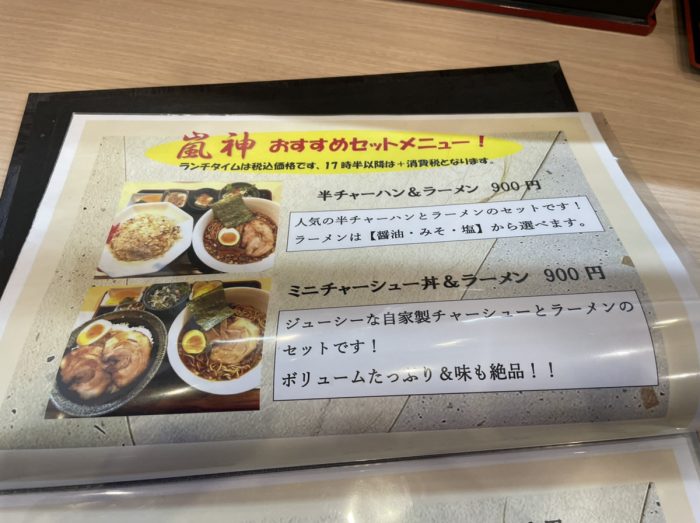 余談ですが「嵐神」さんのラーメンは、醤油以外にも味噌や塩もあり、どれもおすすめとの事でした。