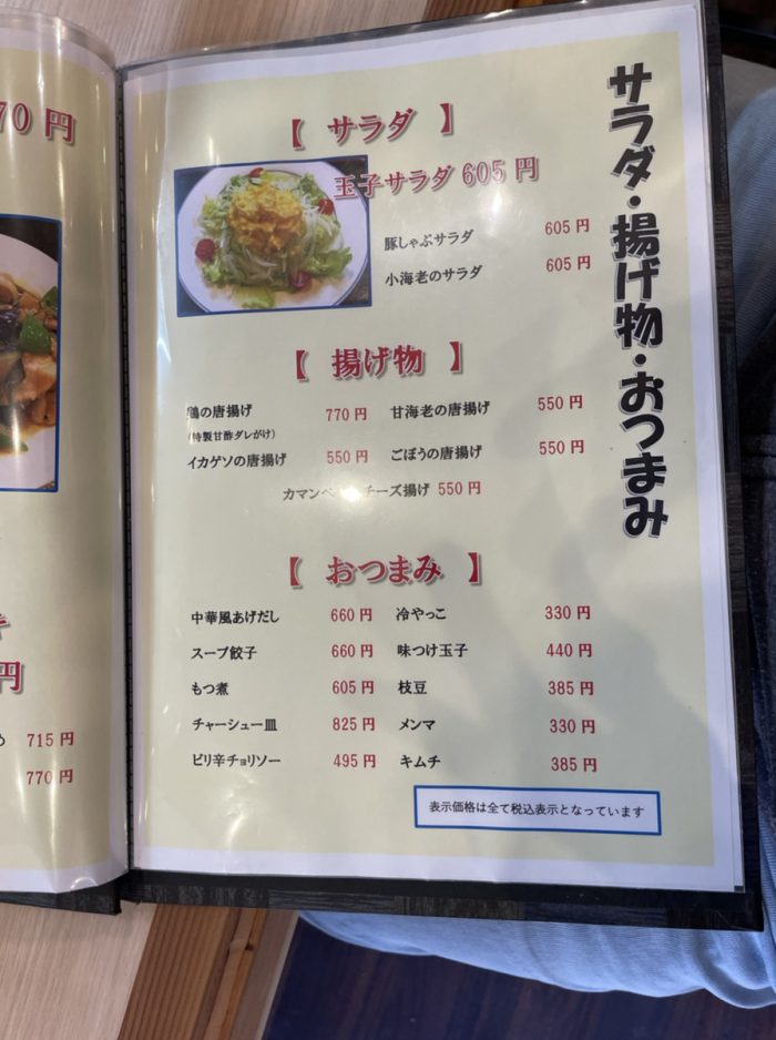 ラーメン以外にも定食やサラダ、おつまみといった豊富なメニューが用意されています。