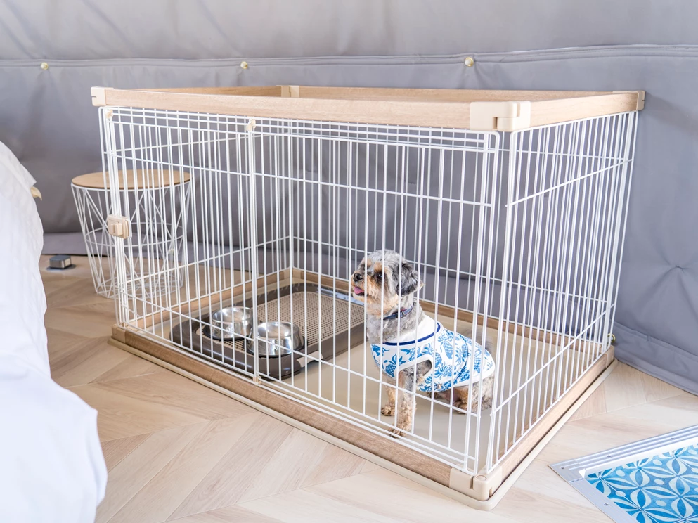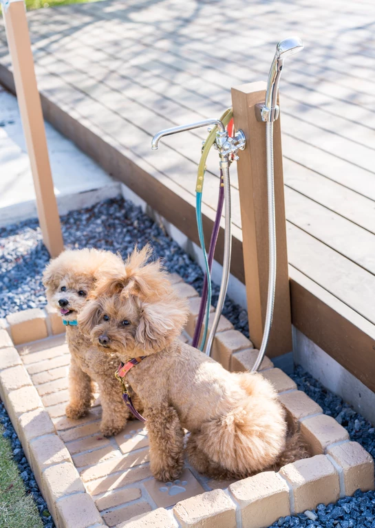 また、ドームテント3棟、ベルテント1棟ではワンちゃんもテント内で一緒に過ごすことができます。足洗い場も用意されています。
