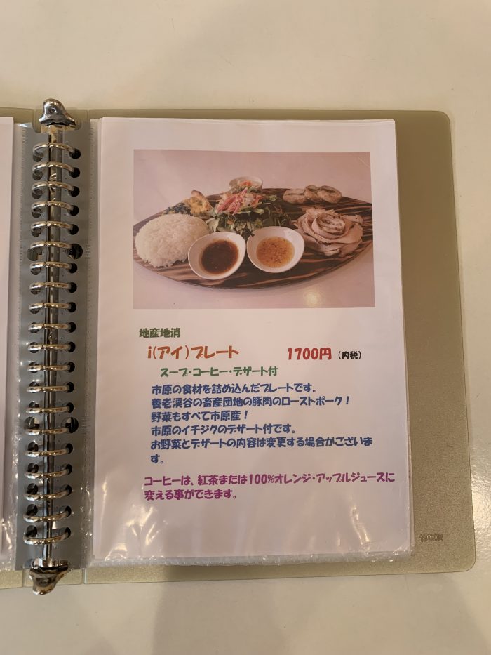 葉っぱをイメージした木の皿は i(アイ)プレート専用。市原産の食材をたっぷり使った地産地消メニューです。