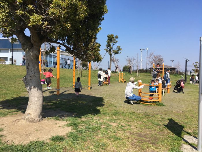 芝生広場では芝生の上で思いっきり体を動かしたり、遊びの広場では滑り台などの遊具や健康遊具があるので年齢層に関係なく利用することができます。お子様から年配の方まで多くの方が利用しています。天気の良い時はお弁当を持ってピクニックしている方も多数。
