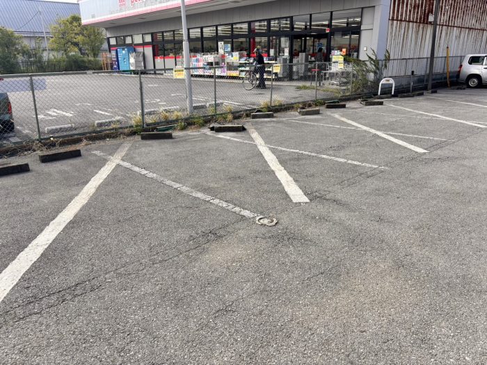 お店とマツモトキヨシさんの間の細道を行った先に左側3台・右側3台の計6台分のスペースがありましたよ!